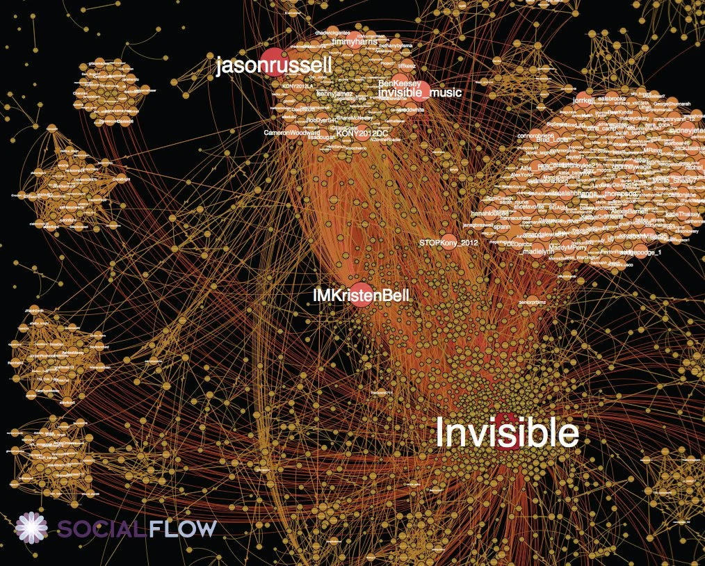 “Dense clusters of activity that were essential to the message’s spread: networks of youth that Invisible Children wanted to promote this video, deploying the grass-roots support of these groups was essential.”