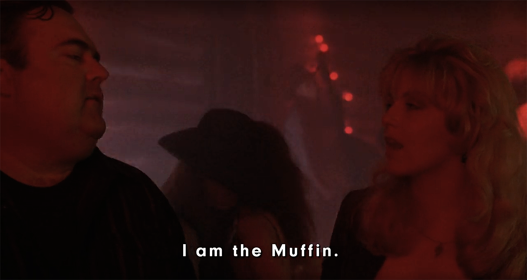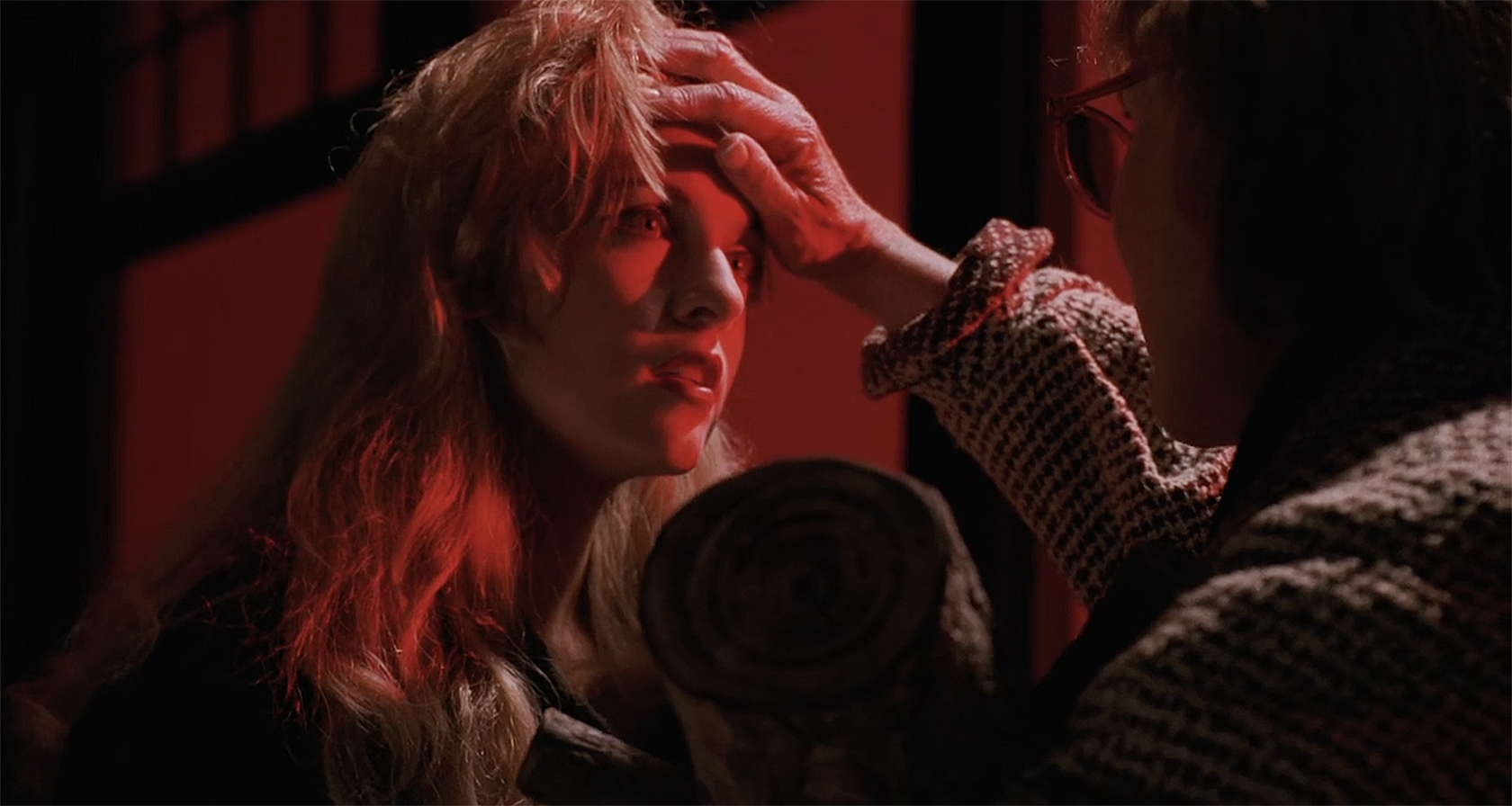 This had always been a strange line in the original Fire Walk With Me, but having seen The Missing Pieces, we now understand why Laura says this. When leaving Donna’s house earlier, and after eating some of Mrs. Hayward’s huckleberry muffins, Donna calls Laura a muffin. She uses it as a term of endearment, a nudge between friends. Laura responds by saying Donna’s the real muffin. It’s a throwaway line between friends as they say goodbye. But as Laura walks down the path to leave, she stops, her face in anguish, and screams ‘No, you’re right, I’m the muffin’. Implying she’s the fool. The one making all the mistakes. The one who can’t help herself. So when she says that later in the Pink Room, we know what she’s talking about. Jacques, unaware of the reference of course, makes a comment about the muffin between Laura’s legs, and they make out as her evening further spirals out of control. But when we are watching this without subtitles, we can barely hear anything over the deafening, hypnotic, sleazy music, and really have to concentrate on the dialogue, much as we’d have to do in such a real situation. The effect is disorienting, terrifying, and draws us in far closer to these characters more than we’d ever be comfortable with. The same few chords relentlessly pound away, with no promise of escape, just like Laura and Donna. Everything is wrong here, and we’re part of it.