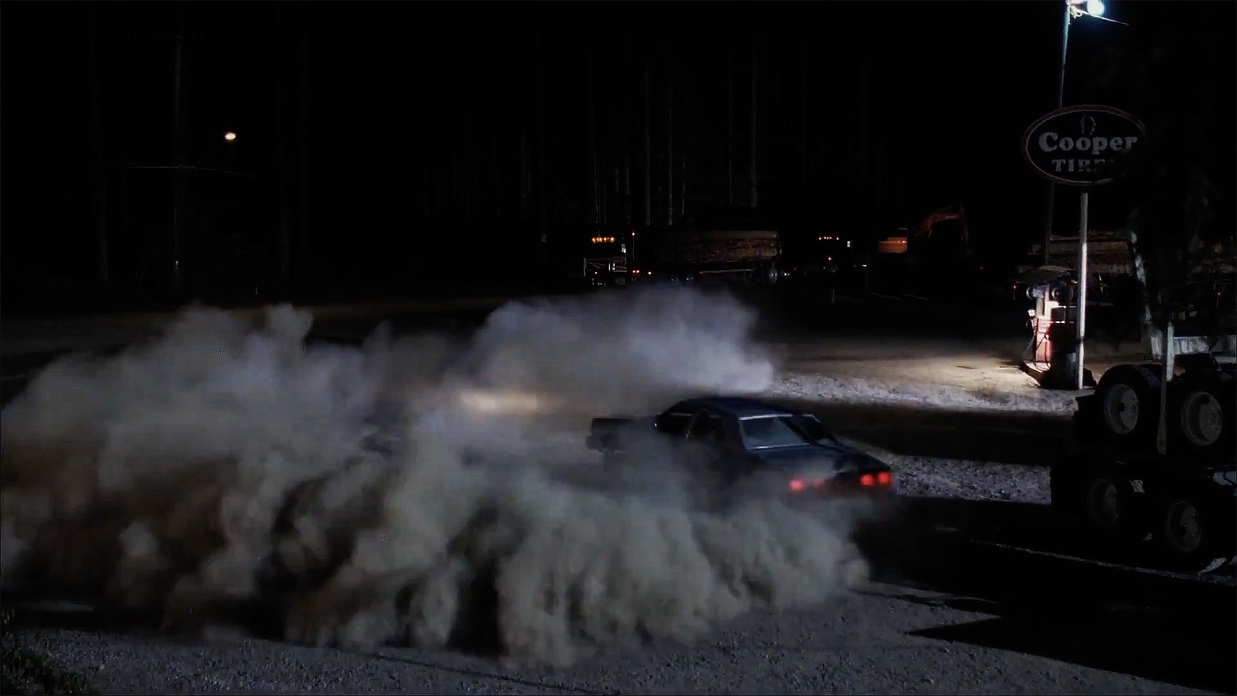 But before we’d arrive there, we’d get The Missing Pieces. One of the more terrifying, overwhelming scenes in Fire Walk With Me is Laura Palmer (Sheryl Lee) and best friend Donna Hayward (Moira Kelly)’s visit to the Bang Bang Bar, where Laura agrees to being prostituted to two out-of-town truckers for the evening by Jacques Renault (Walter Olkewicz), the barman. Upon arrival Laura is warned by The Log Lady about the dangers ahead. But inside she gives the signal to Jacques, who ushers truckers Buck and Tommy towards Laura’s table for the transaction to begin. Donna naively joins them, and awkwardly tries to match Laura, both schoolgirl friends trying to out-do each other in front of their new clients. Donna drinks heavily, and in a classic piece of Lynch dialogue, tells the table ‘Let’s boogie’. The four leave, and head to a desolate roadhouse on the other side of the Canadian border. A lawless place in the middle of nowhere, where being two underage schoolgirls out of their depth and heavily consuming drink and drugs inevitably leads to a single outcome. The Missing Pieces gives us a window into the trip between bars, and the drunken drive through the cold, deserted roads of northern Washington state. The shots of the empty road, illuminated only by the car’s headlights would come back to terrifying effect in Lost Highway. Laura parties with Buck in the back seat, while Donna pleasures Tommy as he drives. They arrive, the car pops a couple of donuts, and they all stumble out, ready for the next chapter. As a wink to us in the audience, the adjoining repair shop is called Cooper Tires. Even though he’s not here, Special Agent Cooper is watching over Laura in his role as guardian angel.